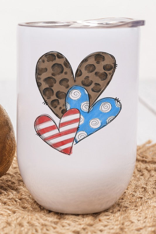Patriotic Hearts Leopard Red Blue Wine Cup Tumbler